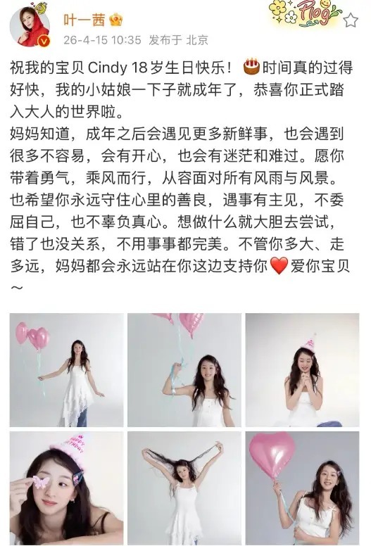 很多看着森蝶长大的网友,这次看到生日照都感慨时间过得太快,当年跟在爸爸身后跑的小丫头,已经长成亭亭玉立的大姑娘了。